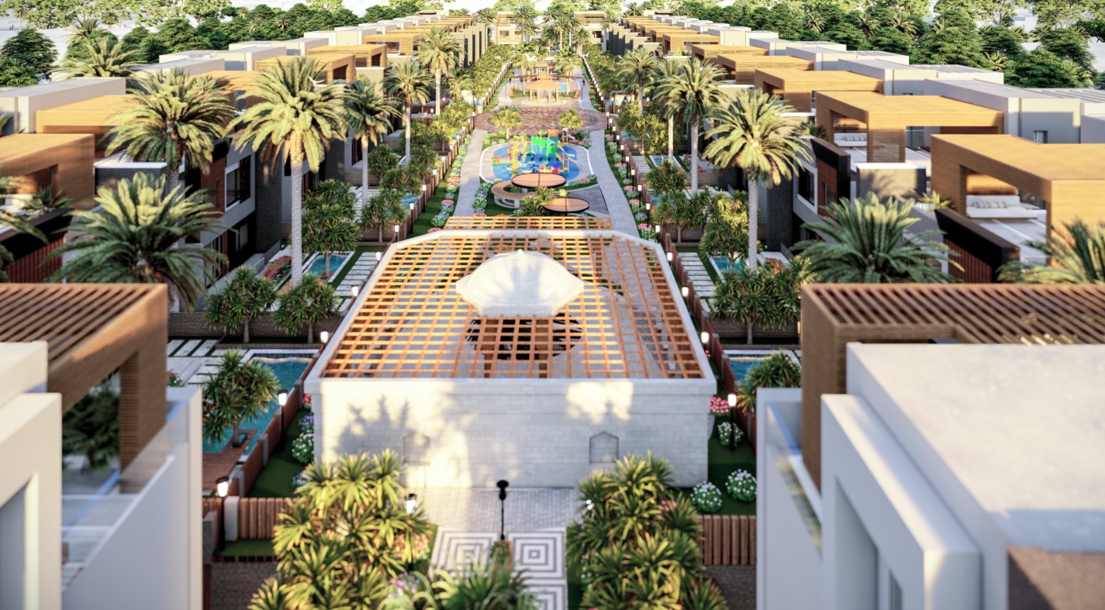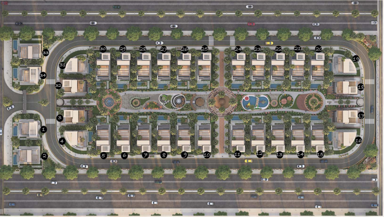 THE COMPOUND PROVIDES RUNNING TRACK AND KIDS AREA. IN ADDITION, THE COMPOUND USES SOLAR-POWERED LIGHTINGS TO ILLUMINATE THE ROADS AND GARDENS